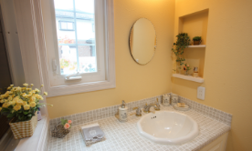 水色とホワイトの2トーンカラーの外観!天然木をふんだんに使用したナチュラルな北欧風の内観。暖かさあふれるその雰囲気に日々の疲れも癒されてしまう。コグマお得意の職人さんのお手製造作洗面台や手洗いも可愛らしい雰囲気により一層色を添えています。家づくりをお考えの方は是非ご見学にいらして下さい。