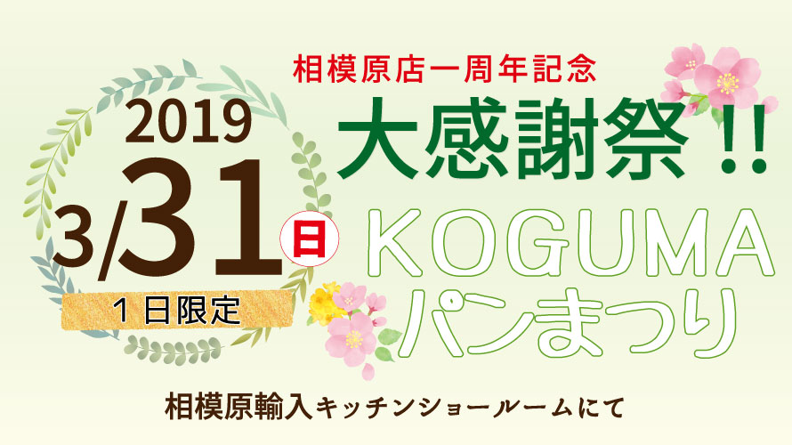 コグマホームでは『相模原店1周年&パン祭り』を開催します!!