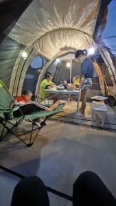 餃子を皮から作ってみたり、子供たちが出来る料理を作って、昼と夜だけテントでご飯♪