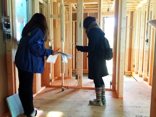お施主様に現場に来ていただき、実際のコンセントや照明の位置、造作物の高さや幅などの