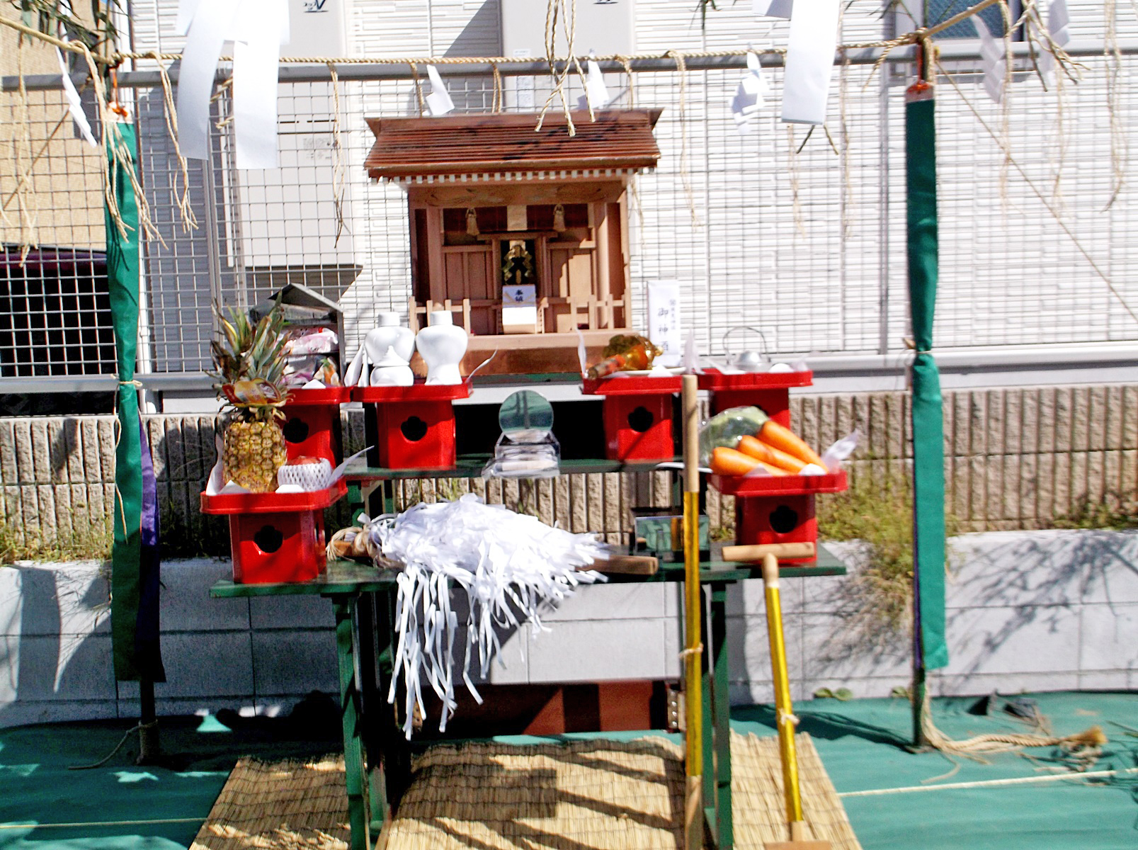 お施主様とコグマの担当スタッフが参加し、工事の無事と安全をお祈りしました。