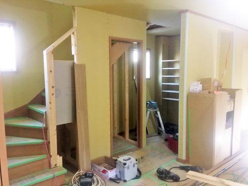 壁がしっかりできて、建具や階段などができてくるとどんどんどんなお家か見えてきますね♪