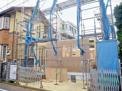 先日新宿区K様邸は1階の建方工事を施工中♪