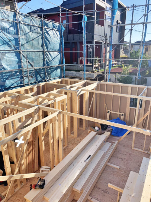 HOME > マイホームブログ > 完成住宅 > 2023年3月完成|横浜市 M様邸 > 横浜市 M様邸 -1F建方-