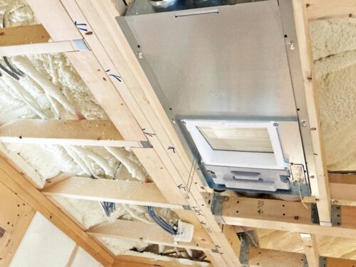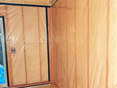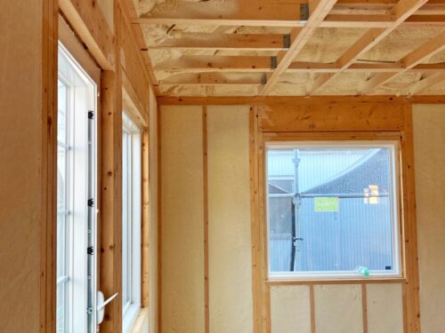 骨組みにピッタリとくっつく吹付断熱♪