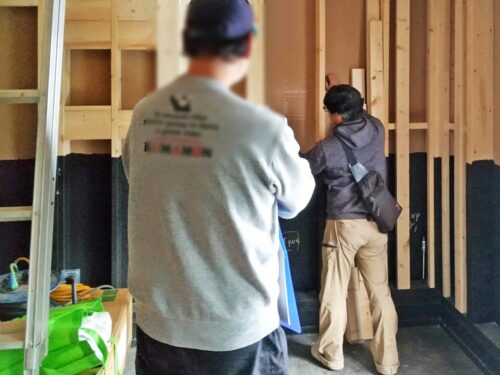 コンセントや照明の位置を図面と実物を見ながら照らし合わせて確定させていく作業です!