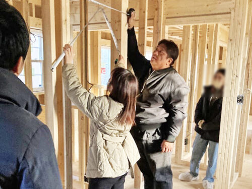 このあと断熱材を施工すると簡単に動かせないのでとっても重要な作業ですね!