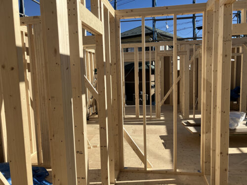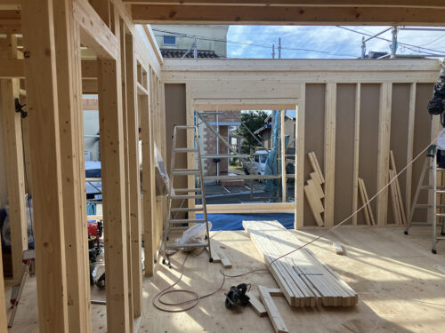 HOME > マイホームブログ > 完成住宅 > 2025年4月完成|秦野市 S様邸 > 秦野市 S様邸 -1F建方-