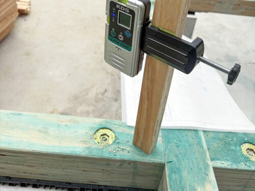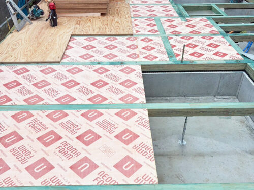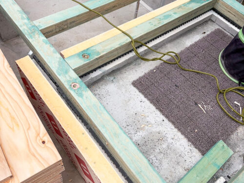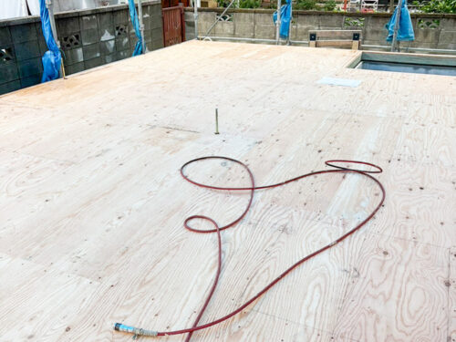 まずは、防蟻の炭を塗った基礎の上に、防蟻を塗布した土台を敷いていきます。