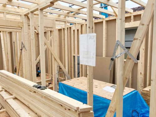 HOME > マイホームブログ > 完成住宅 > 2025年9月完成|あきる野市 O様邸  > あきる野市 O様邸 -1F建方-