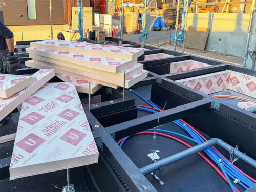 まずは、防蟻の炭を塗った基礎の上に、防蟻を塗布した土台を敷いていきます。