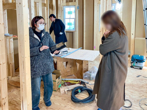コンセントや照明の位置を図面と実物を見ながら照らし合わせて確定させていく作業です!