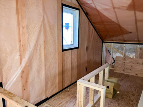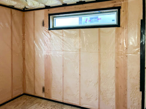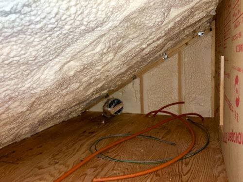 骨組みにピッタリとくっつく吹付断熱♪