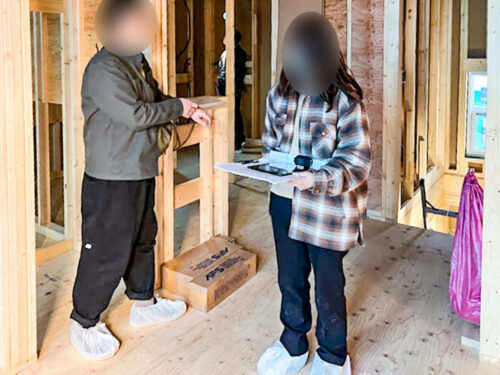 コンセントや照明の位置を図面と実物を見ながら照らし合わせて確定させていく作業です!