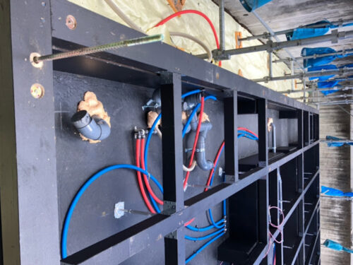 まずは、防蟻の炭を塗った基礎の上に、防蟻を塗布した土台を敷いていきます。
