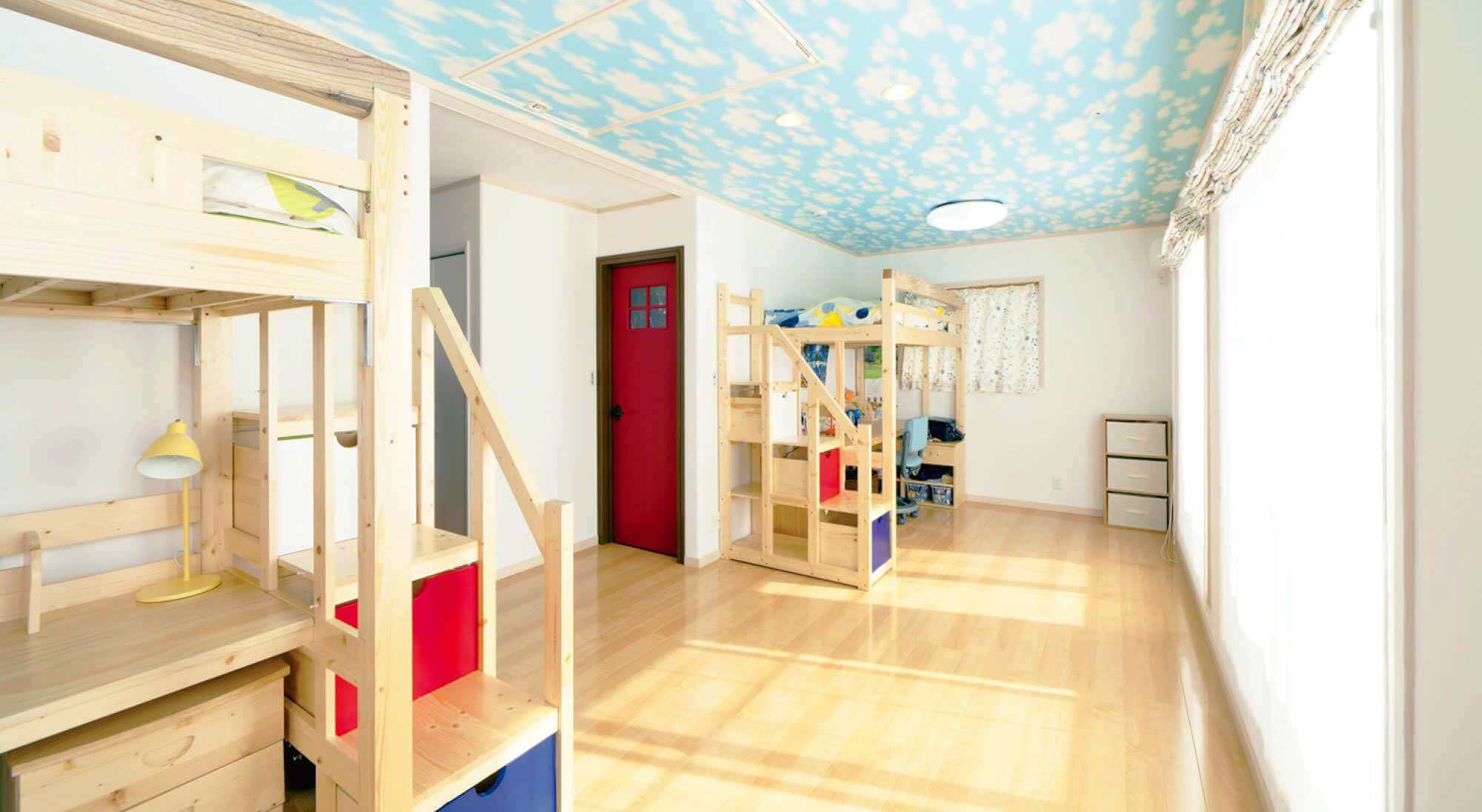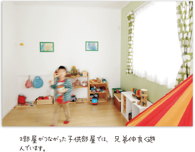 おもちゃの出し入れがしやすいように収納棚を設置。