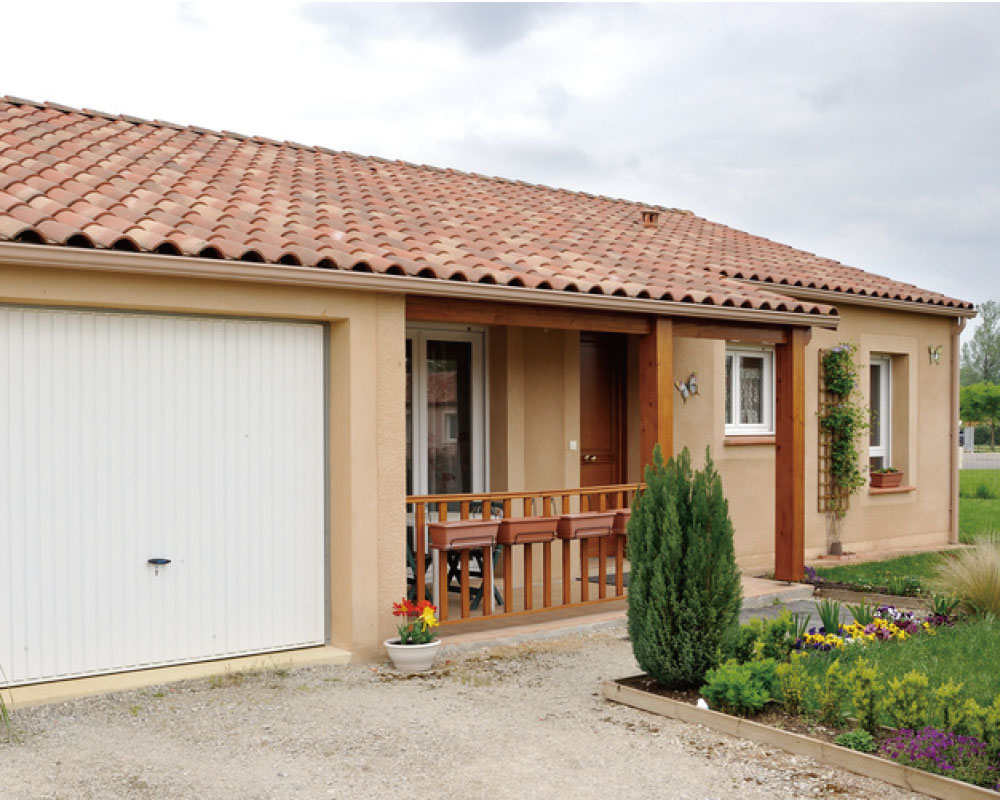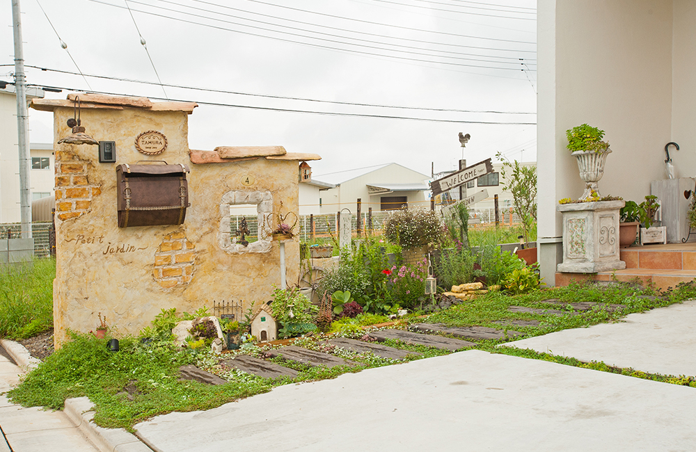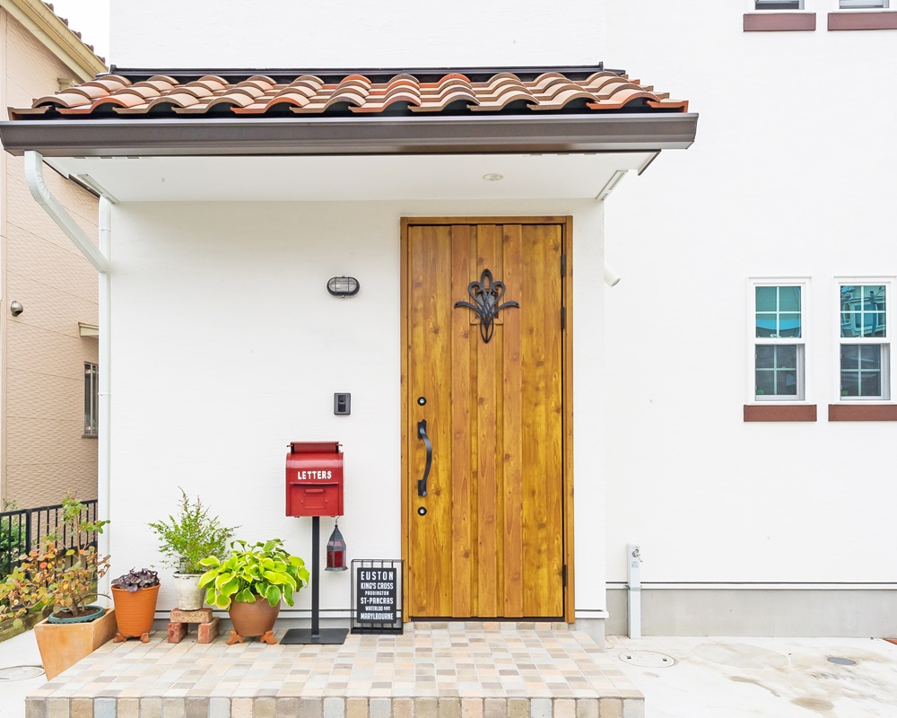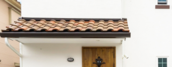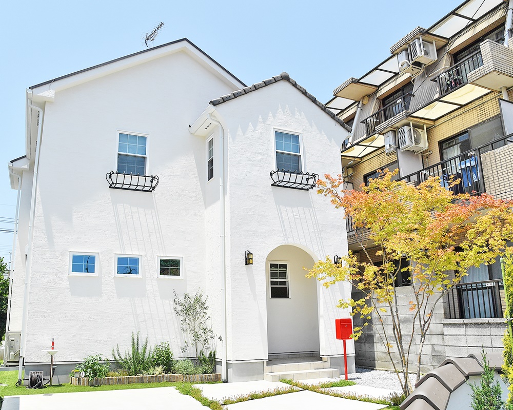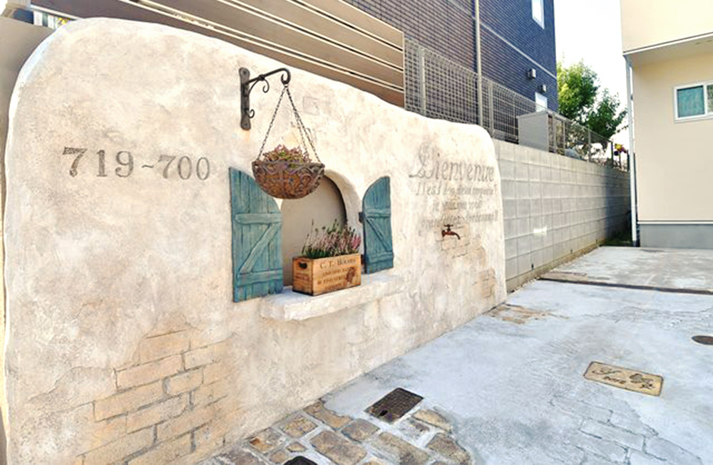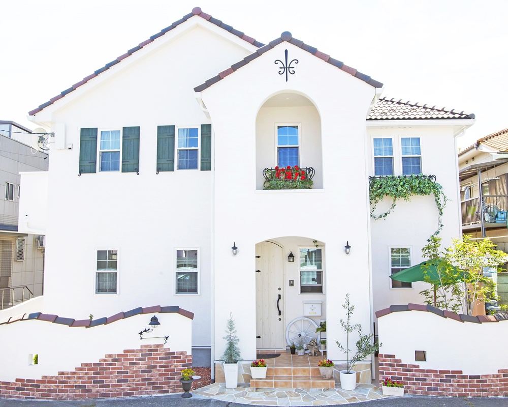 漆喰のコテ跡と洋瓦が明るい趣のプロヴァンスのスタイル。