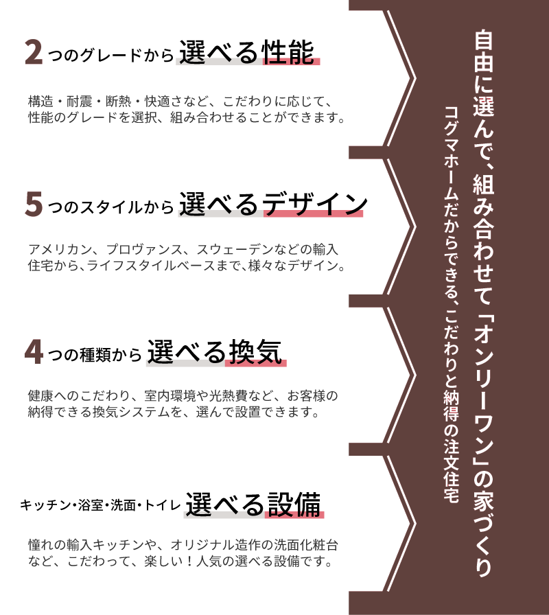 コグマホームの「プロヴァンス」は、お客様の欲しいテイストに合わせた4つのスタイルをご用意。