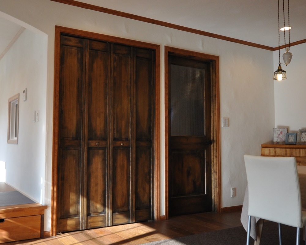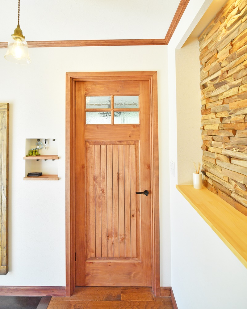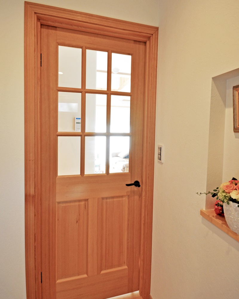 ヨーロッパの伝統的な木製ドアの工法で、無垢素材のパーツを組み上げた、本格ヨーロピアン木製ドアです。