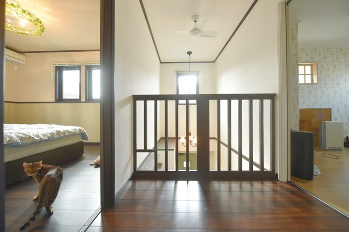猫ちゃんのための吹き抜けを利用したキャットウォークがお洒落です。