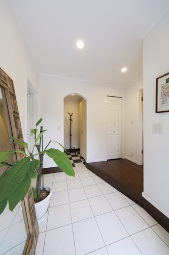 輸入サッシと輸入の玄関ドア、ガレージにも輸入のシャッター。