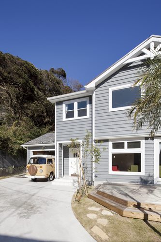 サーファー仕様のアメリカンスタイルのガレージハウス