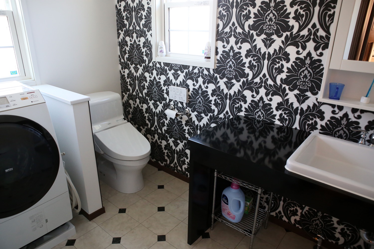 HOME > 施工事例 > リゾートホテルのようなアメリカンガレージハウス WORKS 施工事例 < back next > 一覧へ > アメリカンハウス リゾートホテルのようなアメリカンガレージハウス 大柄模様の壁紙をアクセントに黒の造作洗面台を設置。 アメリカのホテルのような空間の洗面室になりました。 GALLERY < back next > 一覧へ > その他の施工事例 こだわりのアメリカンハウス 赤い瓦屋根のかわいいお家 ブルーが映えるアメリカンデザインハウス ネコちゃんと暮らすバリアフリーのお家 土間のある24帖の北欧モダンな大空間リビング シャビーシックテイストの家 カバードポーチのあるアメリカンスタイルの家 ナチュラルな2世帯住宅のお家 こだわりが詰まったスウェーデンスタイルの家 憧れの輸入キッチンがカッコいい家 家族がゆったり暮らす北欧ナチュラルの家 かわいい×クラシックなアメリカンハウス