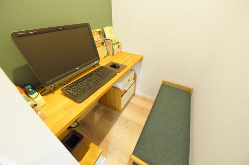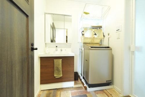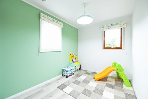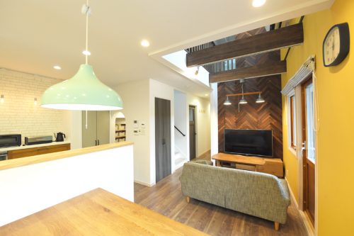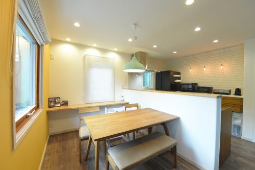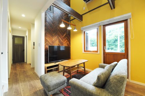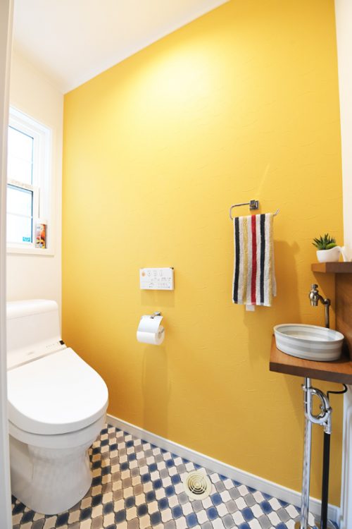 ▲黄色のアクセントクロスがとても明るい印象のトイレ
