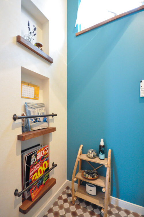 ▲トイレにはおしゃれなマガジンラックを