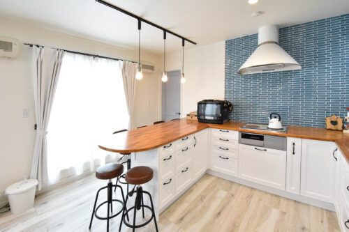 ▲キッチンはコグマオリジナルのコの字型キッチン
