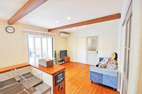 ▲キッチン横に造作棚を作ったダイニングキッチン