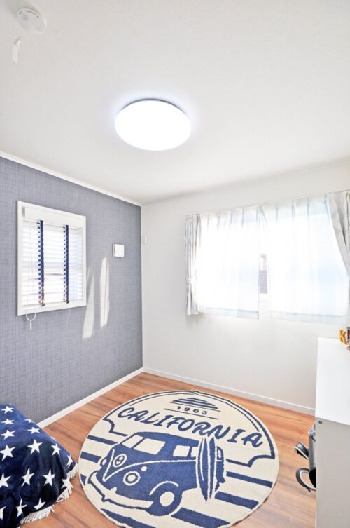 ▲アクセントクロスのでかっこよく仕上げトイレ