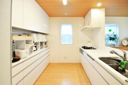 ▲清潔感のあるホワイトのすっきりとしたキッチン