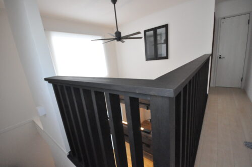▲木で作ったオリジナルの手摺は黒色でかっこいい!