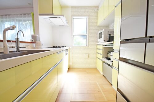 ▲幸運を呼ぶ淡い黄色のキッチン