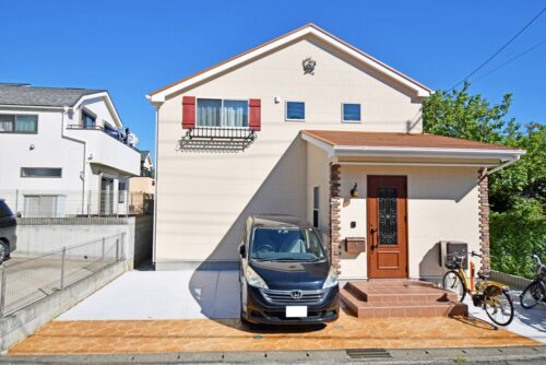▲塗り壁調のサイディングの南欧風の外観