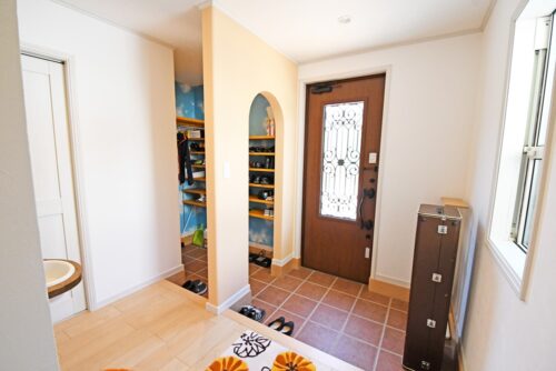 ▲玄関入って右にはシューズクローゼットと玄関ホールに手洗いカウンター