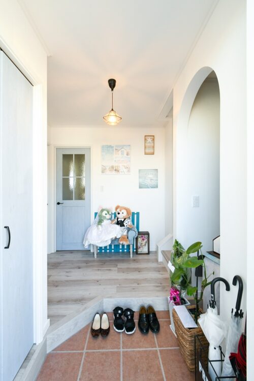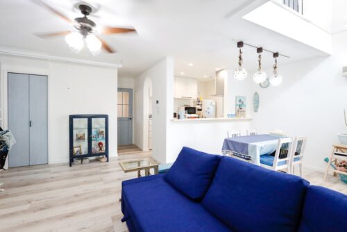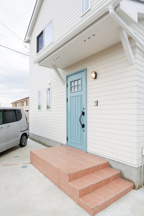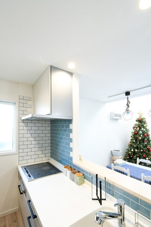▲マリンテイストっぽくタイルは白とブルーの組合わせ