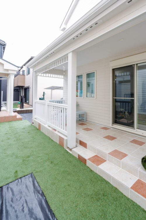 ▲屋根を付けた広々タイルデッキは多目的に使えそう