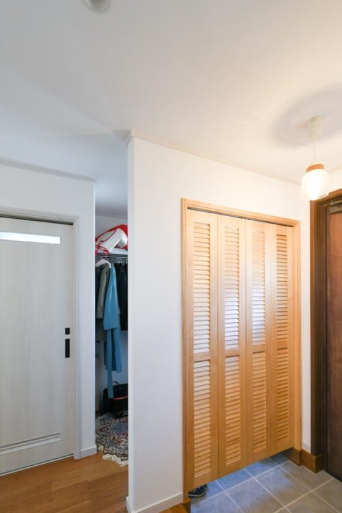 ▲玄関横のルーバー扉のむこうには大容量のシューズクローゼット
