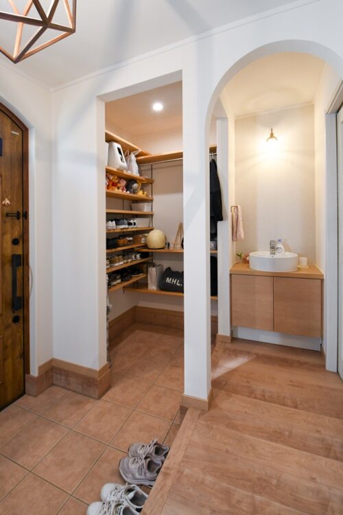 ▲玄関横のシューズクロークからそのままお帰り手洗い