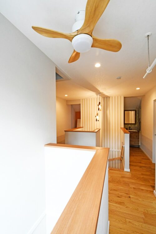 ▲吹抜けの上は色や材質が統一された素敵な空間