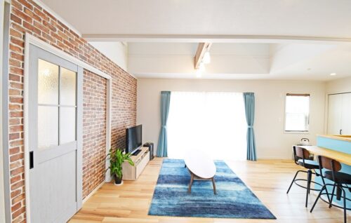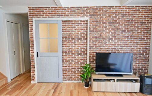 ▲レンガ調のクロスはグリーンがとても似合いますね