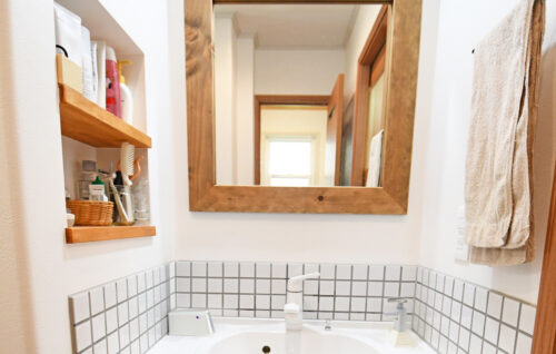 ▲タイルがかわいい洗面台