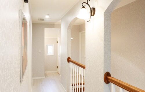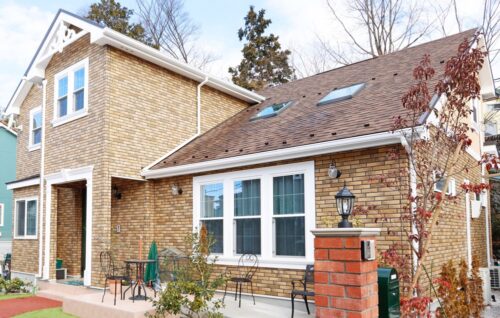 ▲レンガ調の外壁にモールディングで装飾した一部大屋根の外観