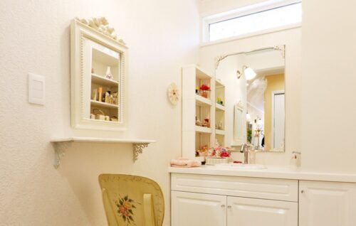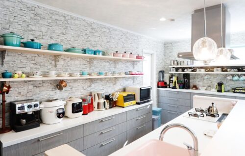 ▲お気に入りの食器を並べるために高さも考えた造作棚