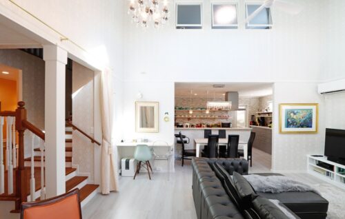 ▲優雅な雰囲気に明かりとプラスする三連窓