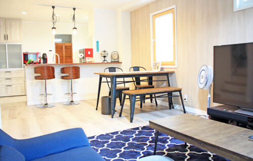 ▲アクセントクロスがかっこいい目指していた大空間のリビング