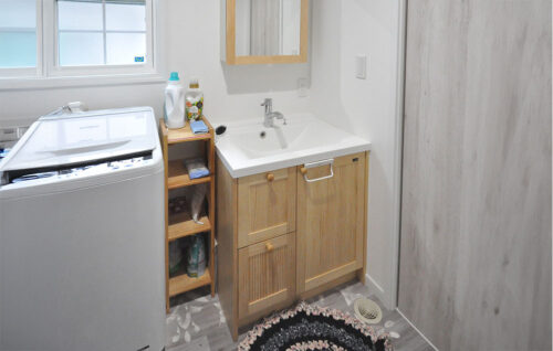 ▲無垢の木の扉の洗面台
