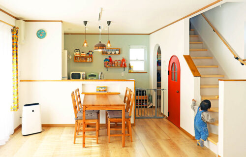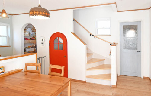 ▲リビングにはかわいいアーチの小窓が付いたドアが、おかしの家のようにかわいい♪